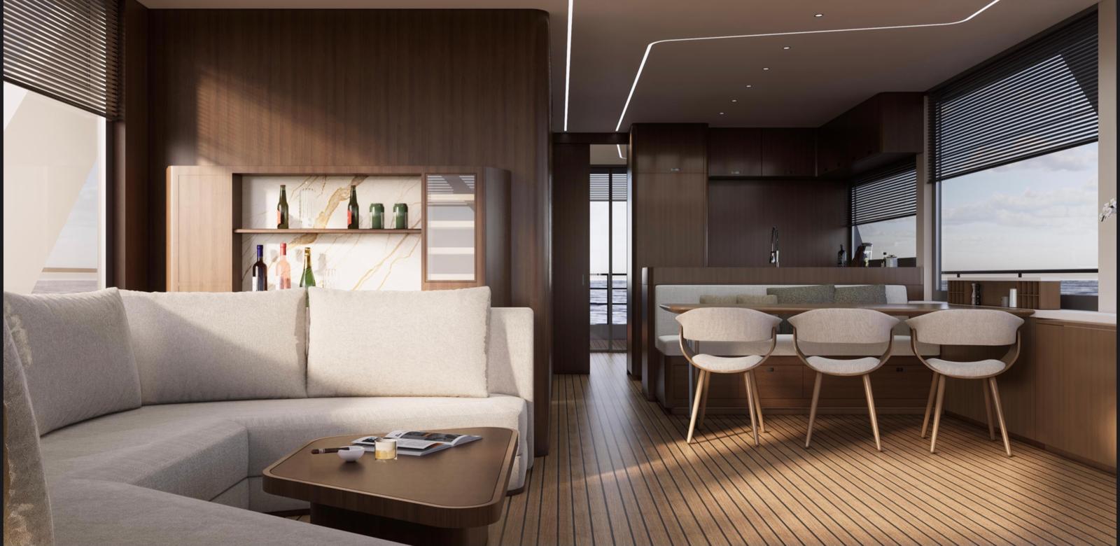 The interior layout of Minoa 240 supports multiple owner and guest suites, complemented by dedicated crew and service areas that ensure seamless operation while preserving privacy. Residential-scale circulation, generous ceiling heights, and panoramic glazing create spaces that feel permanent, open, and calm. With clearly separated technical zones, redundancy in key systems, and a layout optimized for long-term use, Minoa 240 is not designed around movement — it is designed around living. A floating platform built to host life, not just journeys.